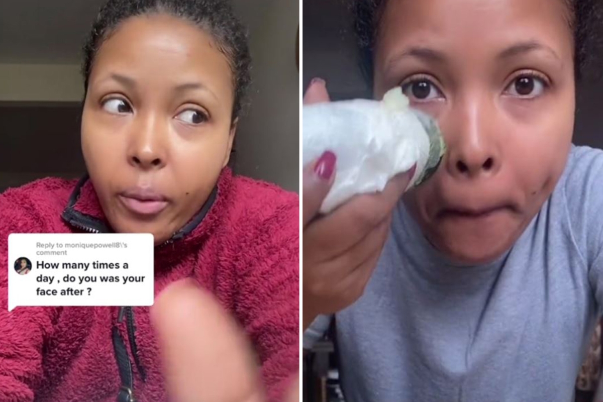 The woman, who goes by the name of Adventureswithana88 on TikTok, uses a frozen cucumber instead of any other products.